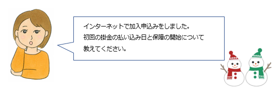 インターネットで加入申込みをしました。初回の掛金の払い込み日と保障の開始について教えてください。