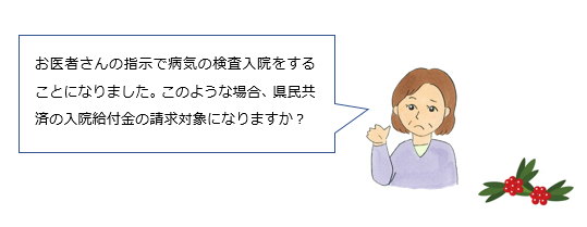 お医者さんの指示で病気の検査入院をすることになりました。このような場合、県民共済の入院給付金の請求対象になりますか?