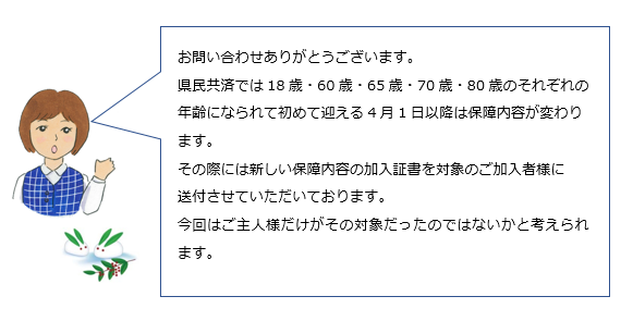 県民共済では18歳・60歳・65歳・70歳・80歳のそれぞれの年齢になられて初めて迎える4月1日以降は保障内容が変わります。