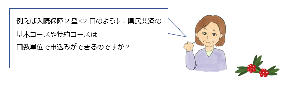 Q.例えば入院保障2型×2口のように、県民共済の基本コースや特約コースは口数単位で申込みができるのですか?