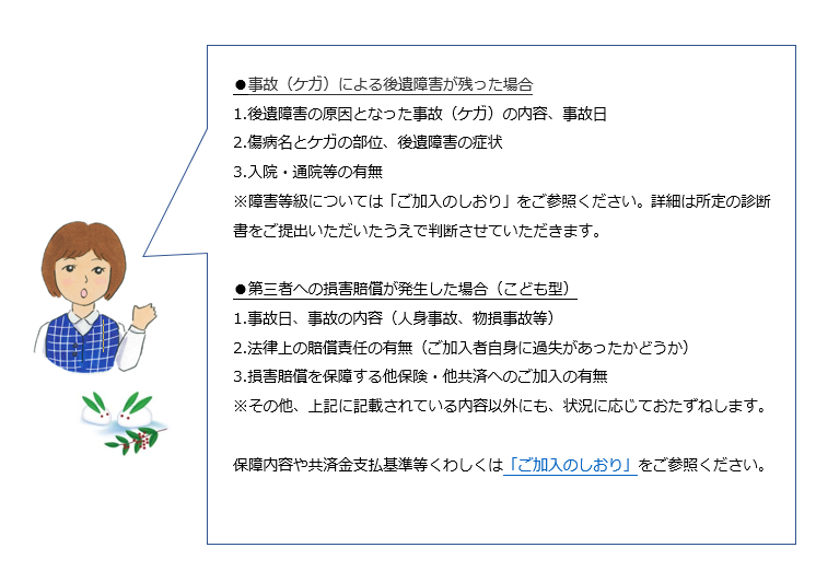 保障内容や共済金支払基準等くわしくは「ご加入のしおり」をご参照ください。