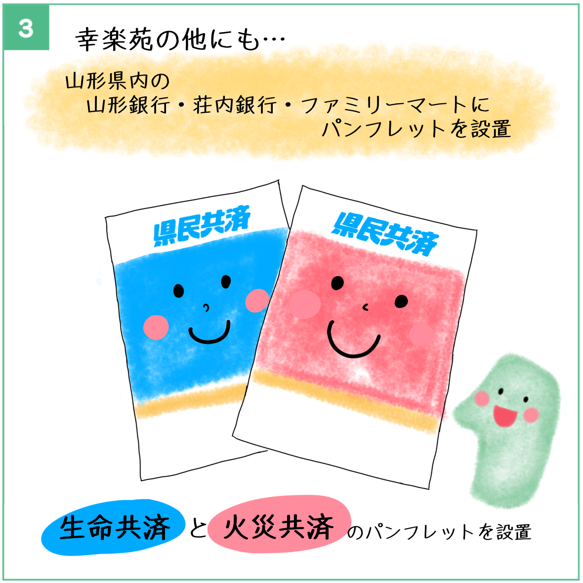 事務所だけでなく山形県内各地で山形県民共済のパンフレットを手に取ることができますよ!