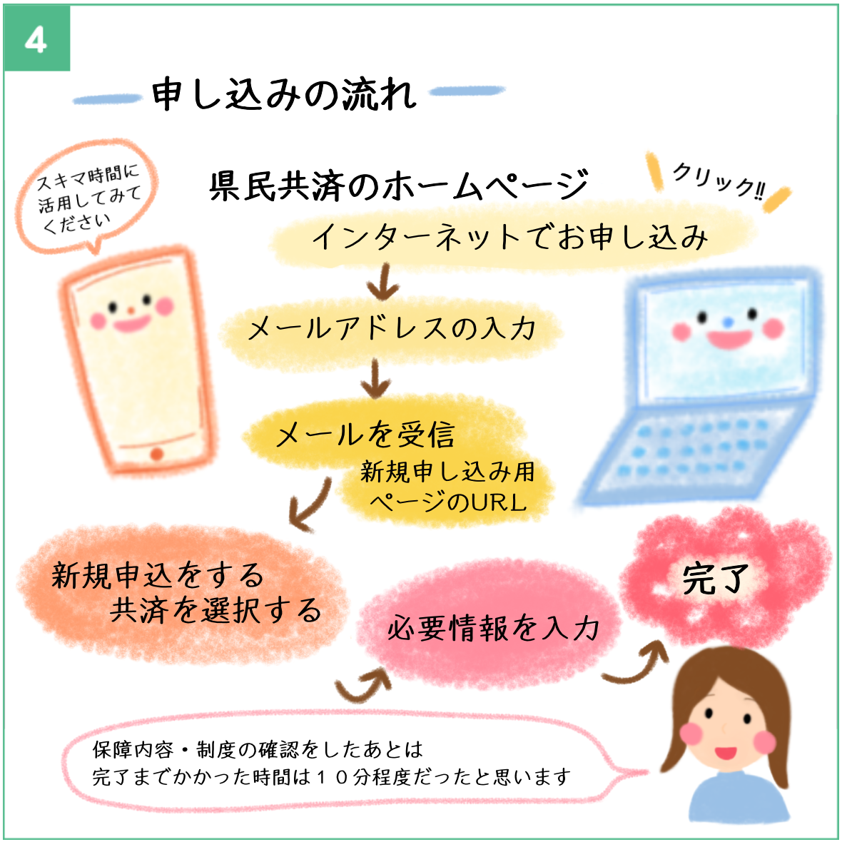 県民共済の営業時間外でもスキマ時間で申し込みできますし、入力内容に問題がなければ、