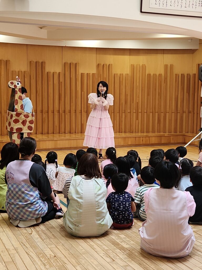 松倉とし子さんの童謡コンサートを楽しみに待ってくれていたつくも保育園の子供たち。松倉さんの素敵なドレスに目をキラキラさせ、元気いっぱい歌って踊ってくれました。 つくも保育園の子供たちだけでなく、おとうさんおかあさん、おじいちゃんおばあちゃんも一緒に童謡を楽しみ、笑顔あふれる幸せな時間でした。